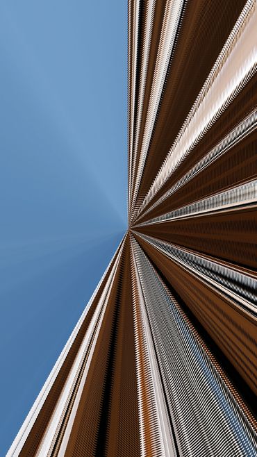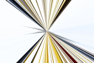 The superposition of hundreds of layers of one same image creates multiple perspectives and the graphic expressions of colored lines searching an imaginary center.